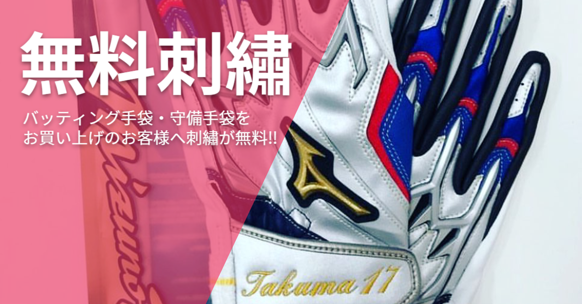 しかも当店お買い上げのお客様は無料です♪(バッティング手袋・守備手袋・グラブ袋無料)